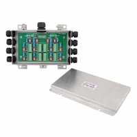 Summing junctions collect data from multiple load cells and combine them into a single output. Our products easily accommodate 2 to 12 connections. This makes them ideal components in industrial scales, bin and tank measuring systems, and hopper and platform weighing systems. All have a rating of IP65 or greater protection from dust and moisture. Many are available with lightning protection.