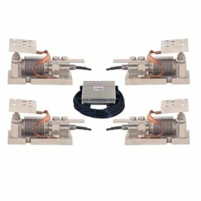 The ANYLOAD MK4-563RSM5 Kit is a complete solution for tank and hopper weighing, featuring four stainless steel single-ended beam load cells and modules. Designed for harsh and washdown environments, it is IP68/69K certified, waterproof, and ideal for chemical and food processing applications. The kit supports capacities up to 500kg and includes an IP67 water-resistant junction box and 65ft (20m) shielded cable. With OIML and NTEP-approved load cells, it ensures accurate readings and reliable performance in demanding conditions.